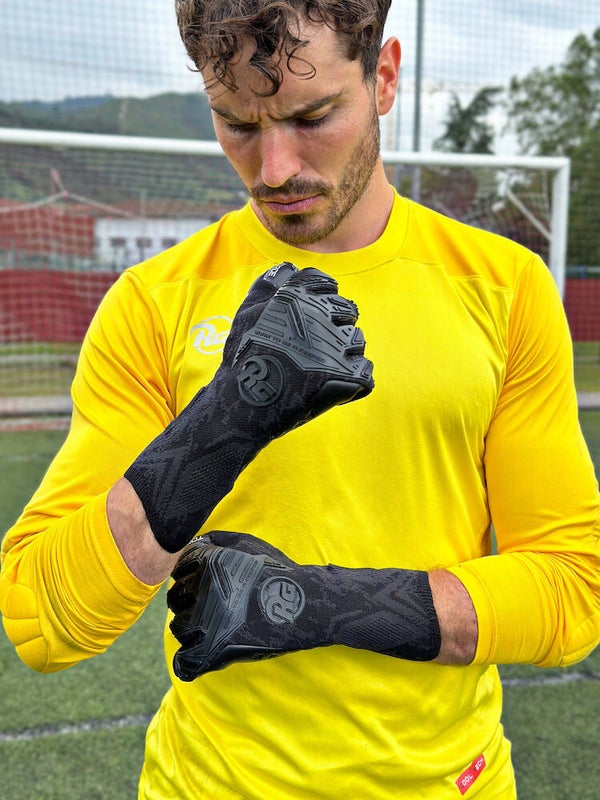 Palma: látex alemán PRO Black Contact de 4 mm con aditivos adhesivos especiales para agarre óptimo, resistencia a la abrasión y rendimiento excepcional en todas condiciones. Diseño extra-largo con texturas en relieve para mayor control del balón…